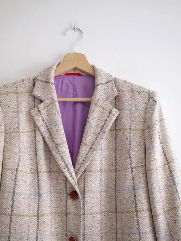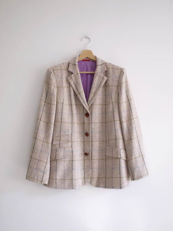 Unikatowa marynarka vintage. w 100% wykonana z jedwabiu. Rozmiar z metki 42, może być zbyt dopasowana w ramionach, więc polecam na M, lub na XS-S jako oversize. Bez wad, po czyszczeniu chemicznym.