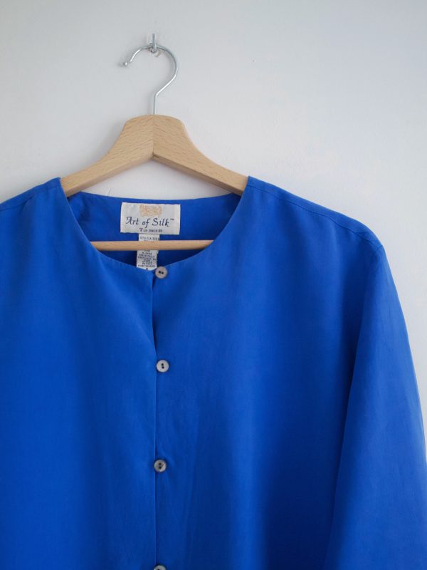 100,00 zł50,00 złJedwabna bluzka vintage. Materiał jest dość gruby, może być noszona również jako lekkie okrycie wierzchnie. Rozmiar z metki S, fason jest obszerny, więc polecam jako one size.