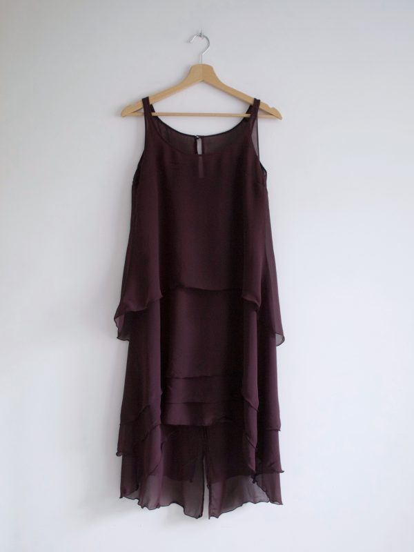 120,00 złJedwabna sukienka w śliwowym kolorze. Pochodzi z kolekcji projektanta Karla Lagerfelda dla H&M. Wielowarstwowa, z tyłu zapinana na guziki, powlekane jedwabiem. Rozmiar z metki 34, bez wad.