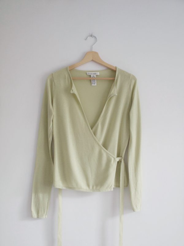 Pastelowy sweterek marki Banana Republik, wykonany z jedwabiu z dodatkiem kaszmiru. Rozmiar z metki S, bez wad.