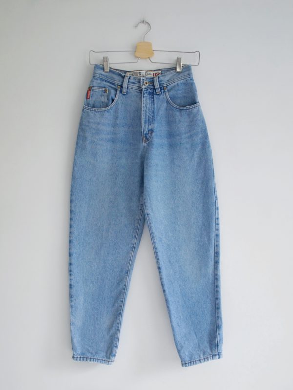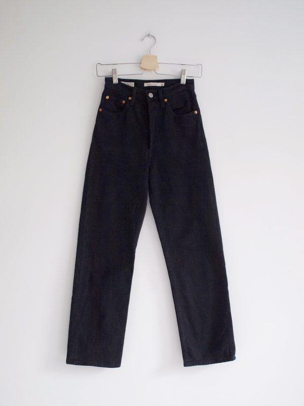 Jeansy Levi’s z wysokim stanem i prostymi, szerokimi nogawkami. Zapinane na guziki. Rozmiar z metki W24 L27, nie są elastyczne. Bez wad.