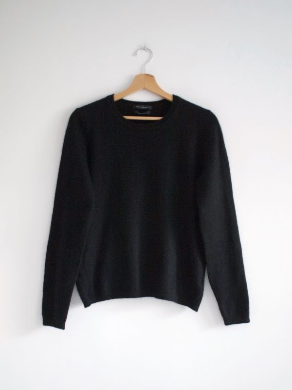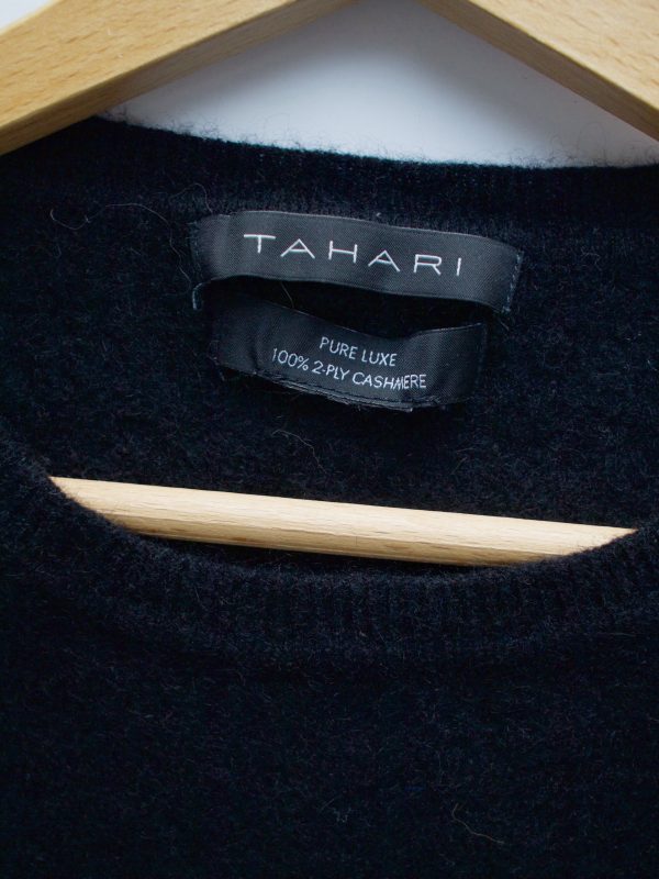 Kaszmirowy sweter marki Tahari. Jest delikatnie sfilcowany, nie jest to widoczne i nie przeszkadza w noszeniu, sweter jest miękki i puszysty. Polecam na S-M.