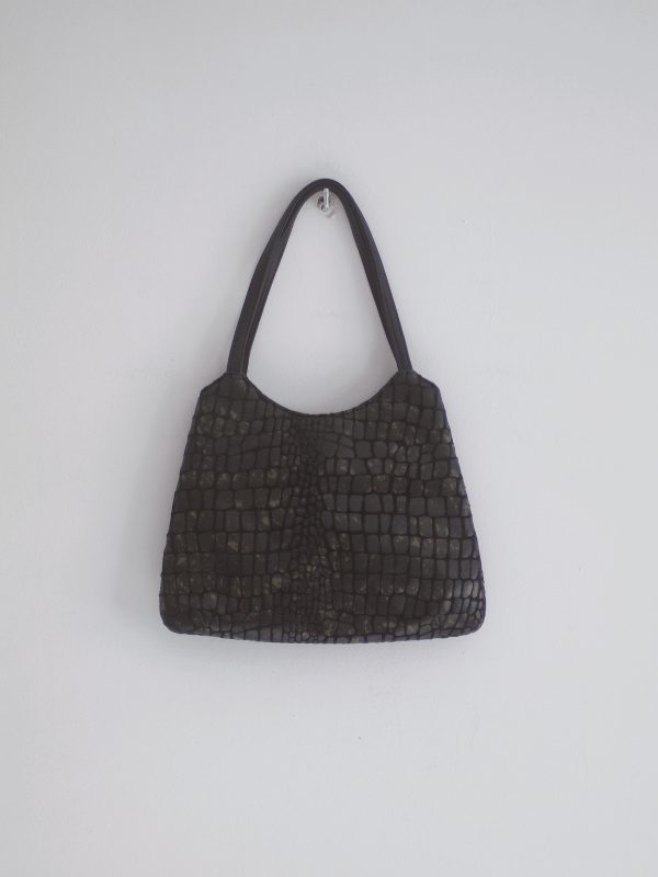 Mała torebka vintage. Wykonana ze skóry naturalnej, imitującej skórę węża, z podszewką. W środku jedna komora oraz kieszeń na telefon. Bez wad.