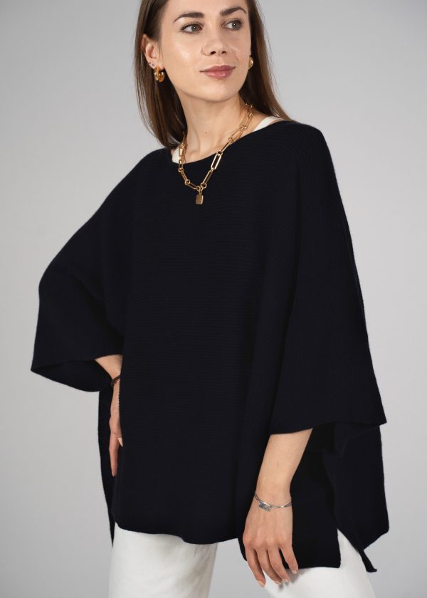 160,00 zł128,00 złWełniane ponczo skandynawskiej marki COS w kolorze bardzo ciemnego granatu, prawie czarne. Wykonane z grubej wełnianej dzianiny w prążek. Rozmiar z metki L, ze względu na fason polecam jako one size. Bez wad.