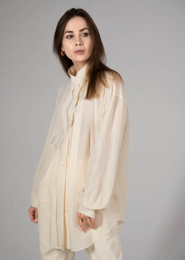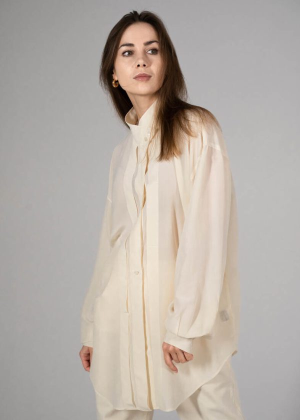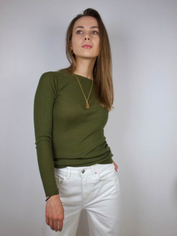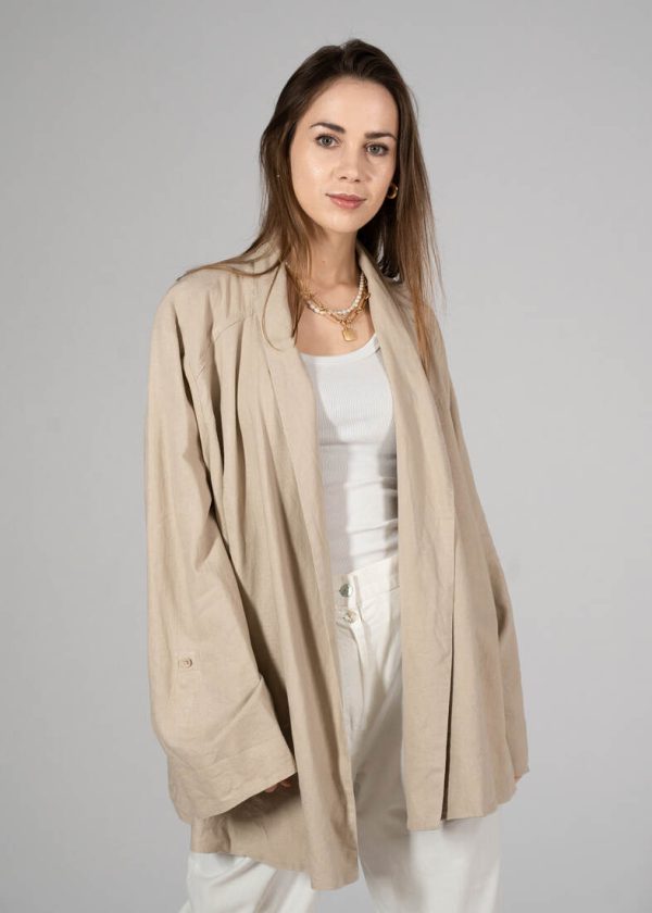 Skład: 55% len, 45% wiskoza. Modelka ma 165 cm wzrostu i nosi rozmiar XS-S.Szerokość w klatce 59 cm