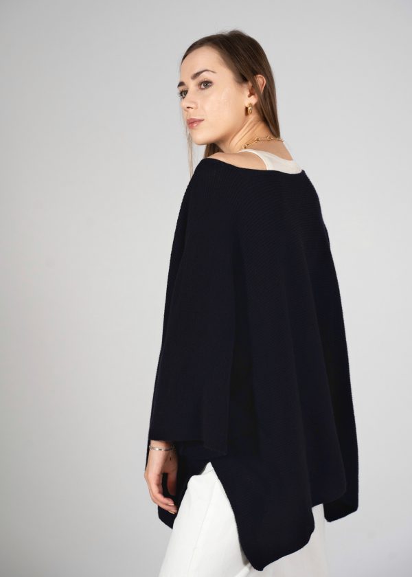 160,00 zł128,00 złWełniane ponczo skandynawskiej marki COS w kolorze bardzo ciemnego granatu, prawie czarne. Wykonane z grubej wełnianej dzianiny w prążek. Rozmiar z metki L, ze względu na fason polecam jako one size. Bez wad.