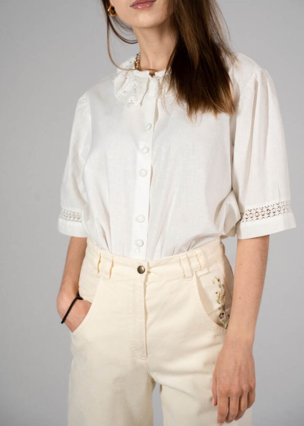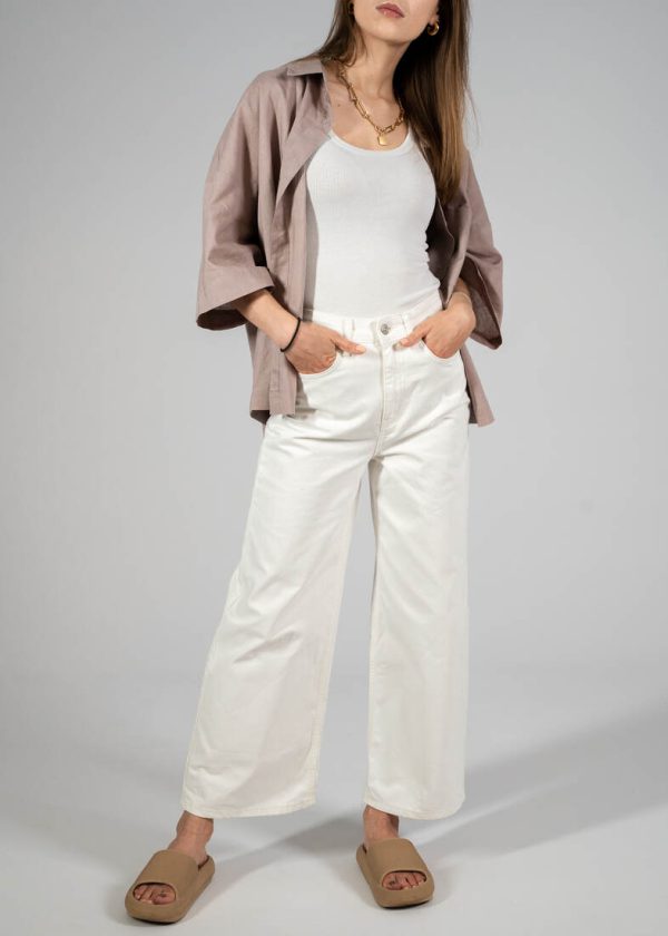 Skład: 70% bawełna, 30% len. Modelka ma 165 cm wzrostu i nosi rozmiar XS-S.Szerokość w ramionach 38 cm