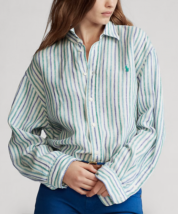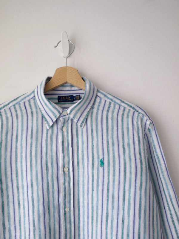 Koszula renomowanej marki Ralph Lauren, cena katalogowa 599 zł. W 100% wykonana z lnu, zapinana na guziki z naturalnej muszli.