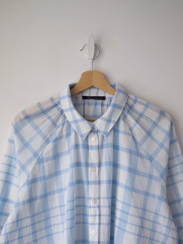 Koszula o luźnym fasonie, bez zaznaczonej linii ramion. Wykonana z lekkiej muślinowej bawełny.