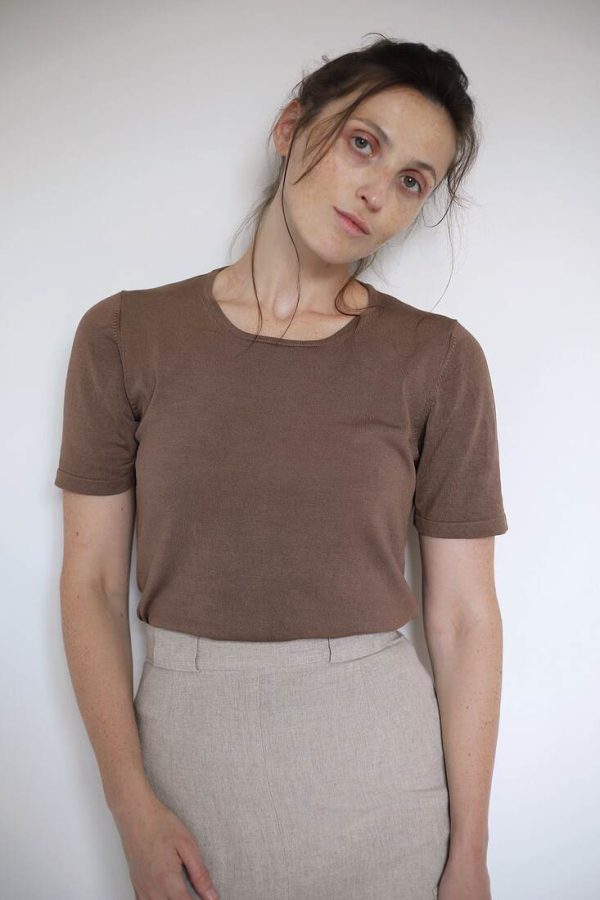 Modelka ma 167 cm wzrostu i nosi rozmiar S.Szerokość w klatce 40 cm