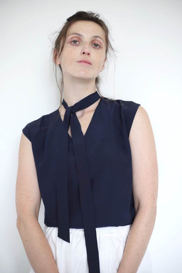 Skład: 80% jedwab, 17% poliamid, 3% lycra. Modelka nosi rozmiar S.Szerokość w ramionach 35 cm
