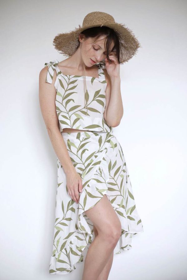 120,00 złUpcycled spódnica i top, szyte z bawełnianej zasłony. Spódnica o kopertowym kroju, szeroki top na wiązanych ramiączkach. Zestaw bez podszewki, idealny na plażę. Polecam na rozmiar S