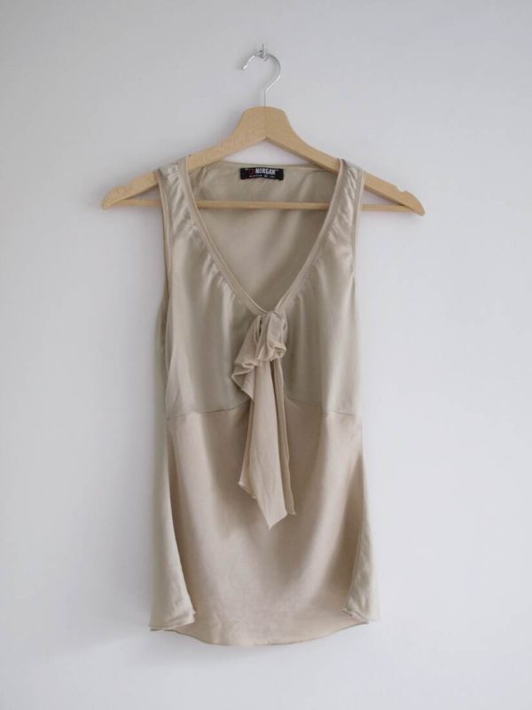 Jedwabny top vintage w kolorze szampańskim. Brak metki z rozmiarem, polecam na XS-S. Bez wad.
