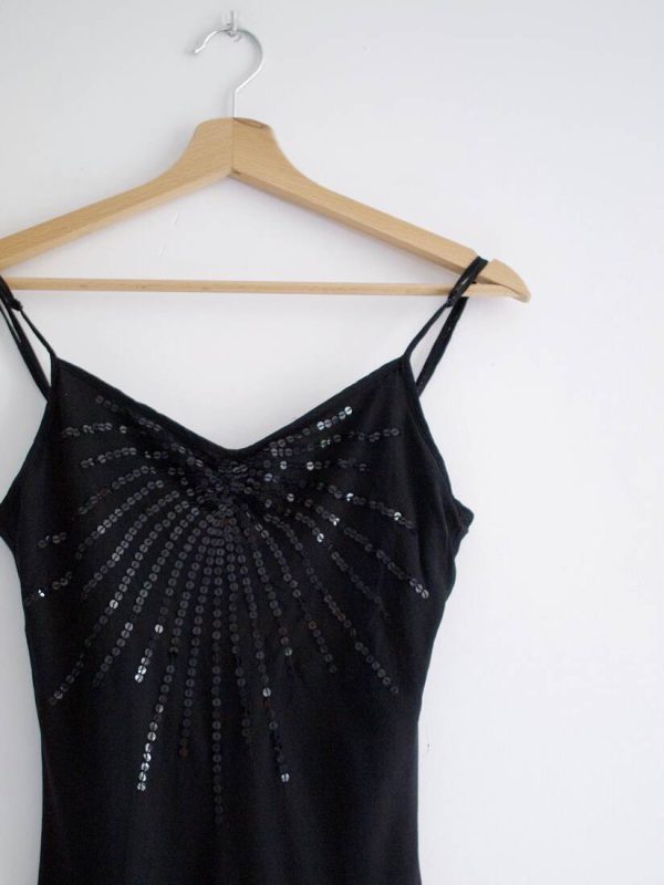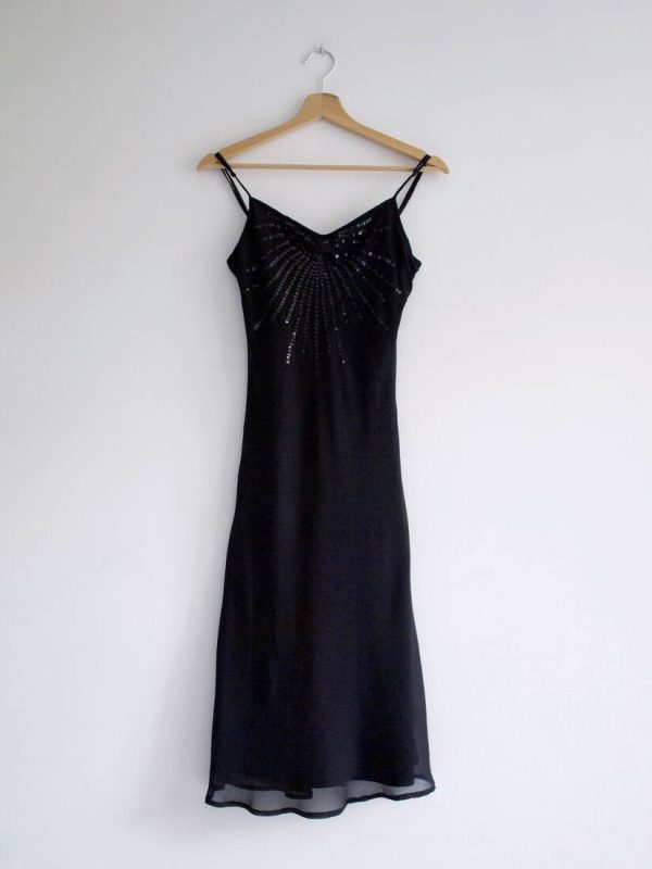 Jedwabna sukienka vintage z cekinami. Rozmiar z metki 36, polecam na XS. Bez wad.