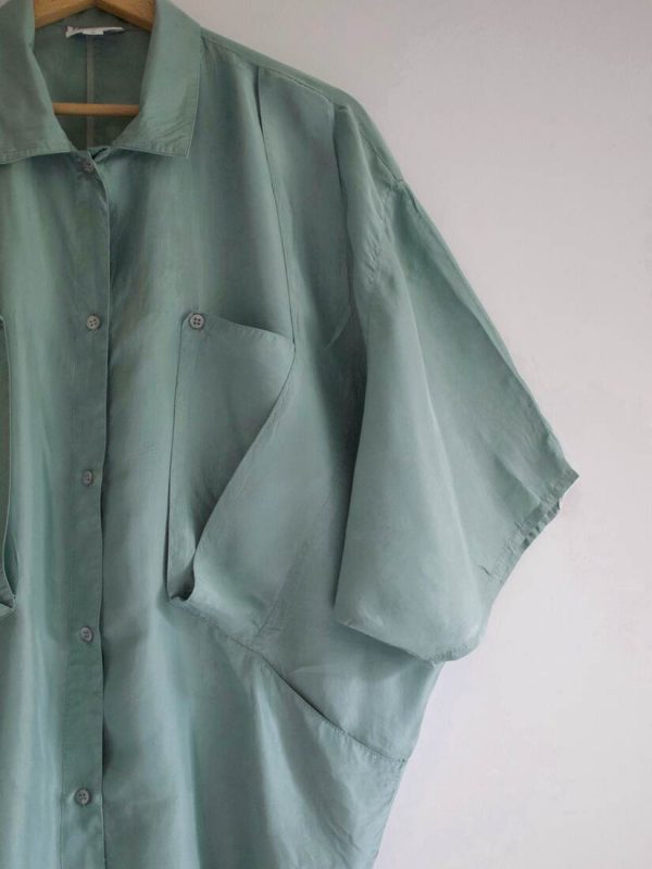 70,00 złJedwabna koszula vintage o ciekawym kroju. Rozmiar z metki S, jednak koszula jest bardzo luźna, więc polecam jako one size. W niektórych miejscach ma wady materiału, pokazane na zdjęciach, nie są widoczne w noszeniu.