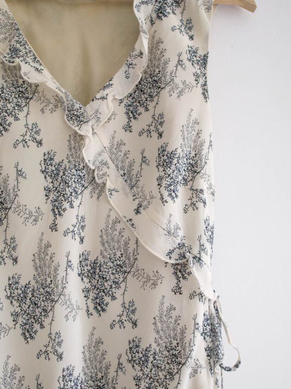 Jedwabny top vintage z długim wiązaniem. Rozmiar z metki S, z tyłu ma wszytą gumkę. bardzo dobry stan.