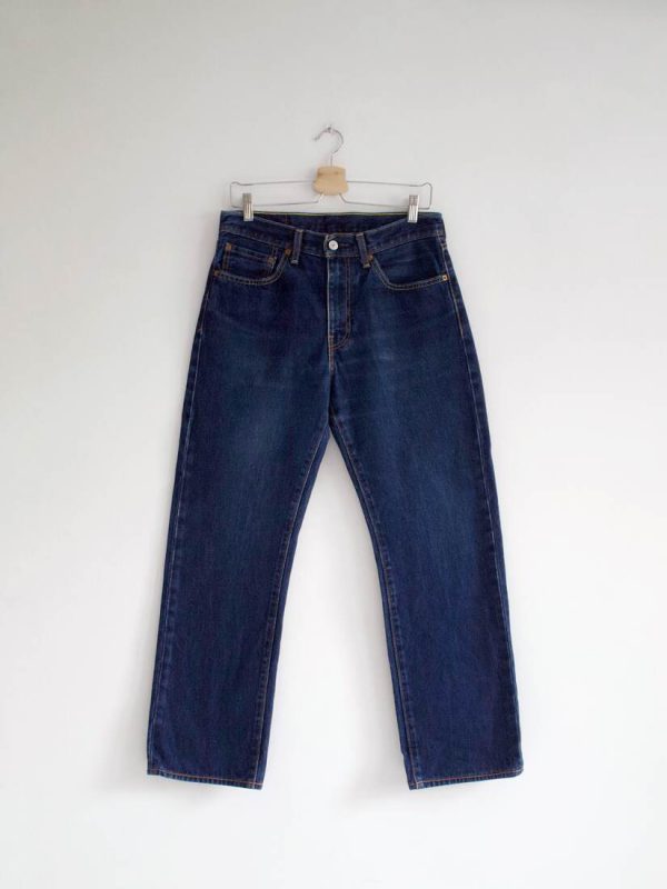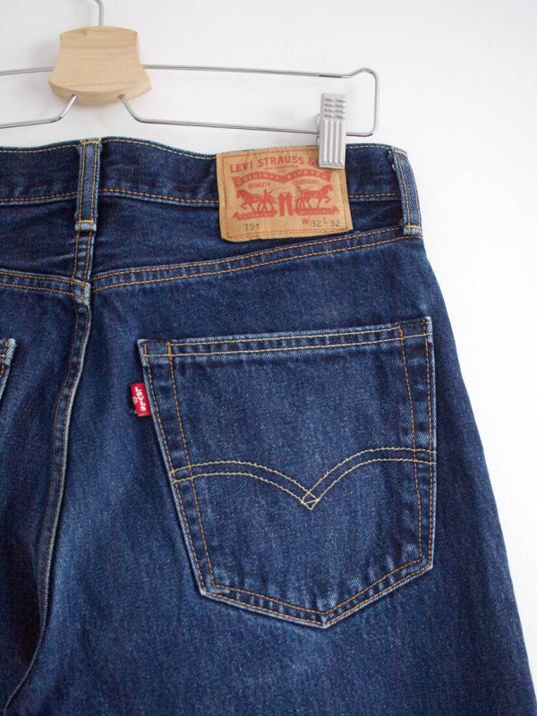 Jeansy marki Levi’s, model 751 z prostymi nogawkami. Rozmiar W32 L32, polecam na L. Prawdopodobnie były skracane, poza tym bez wad.