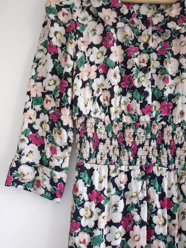 Sukienka vintage w piękne kwiatowe wzory. Rozmiar z metki 36, polecam na XS. Bez wad.