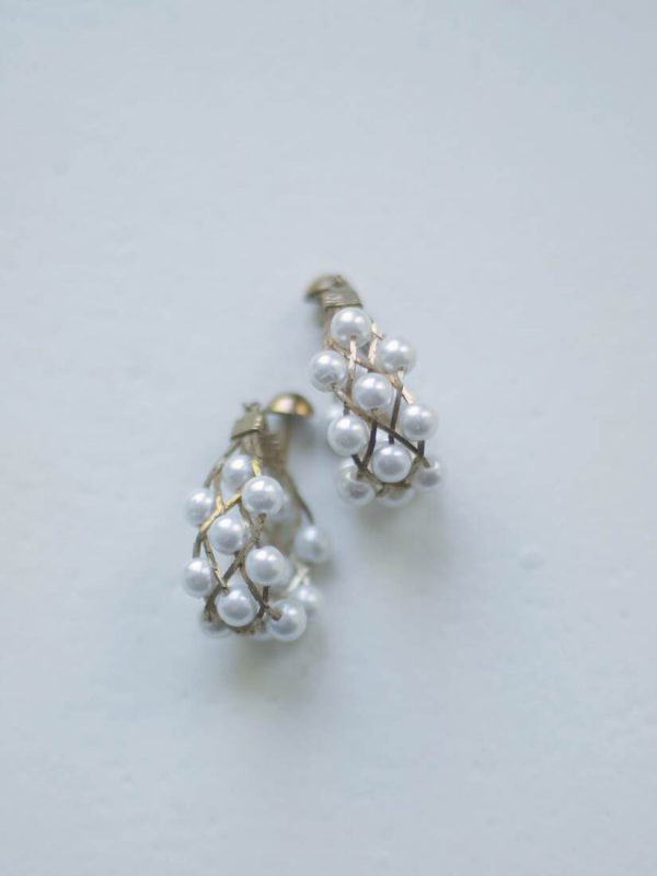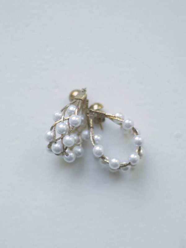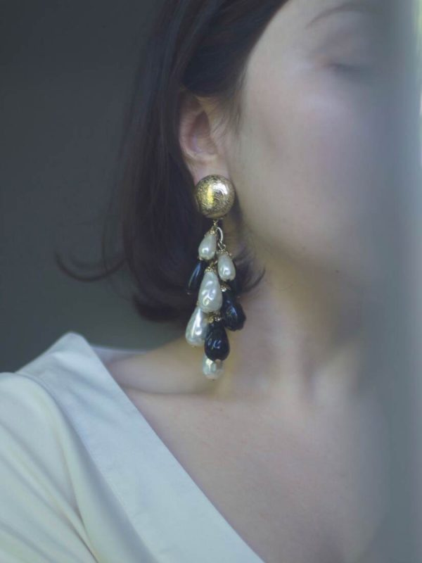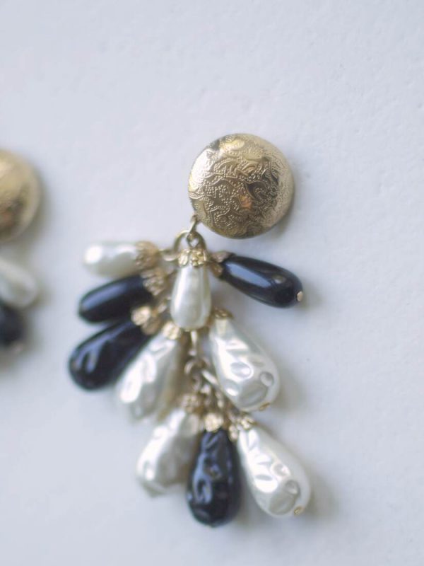 Kolczyki vintage ze sztucznymi perełkami. Długość ok 4,5 cm, bardzo dobry stan.
