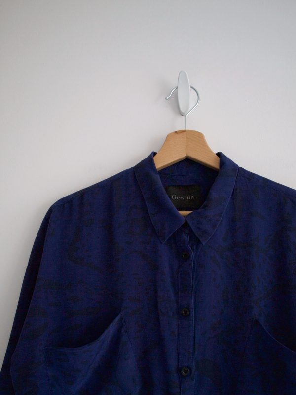 Bluzka ekskluzywnej skandynawskiej marki Gestuz. W 100% wykonana z jedwabiu w kolorze granatowym, w zwierzęcy wzór.