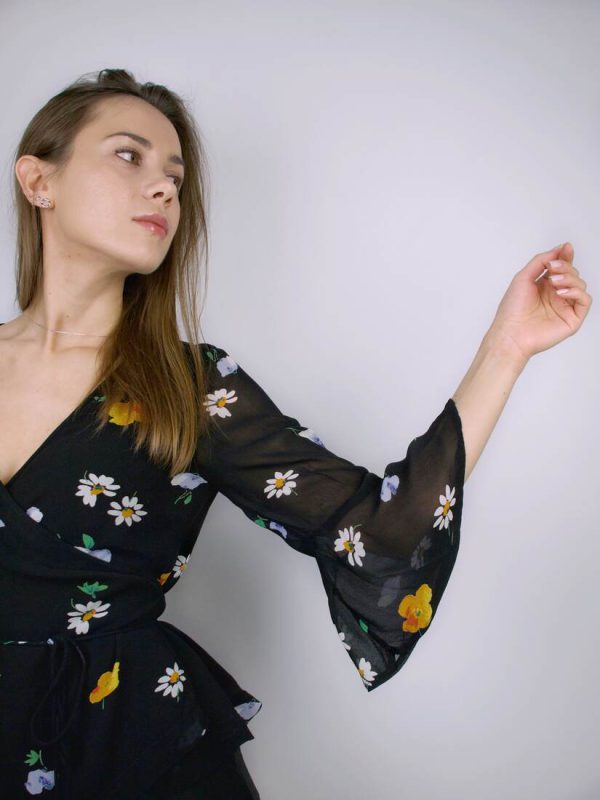 Modelka ma 165 cm wzrostu i nosi rozmiar XS-S. Skład: 100% jedwab