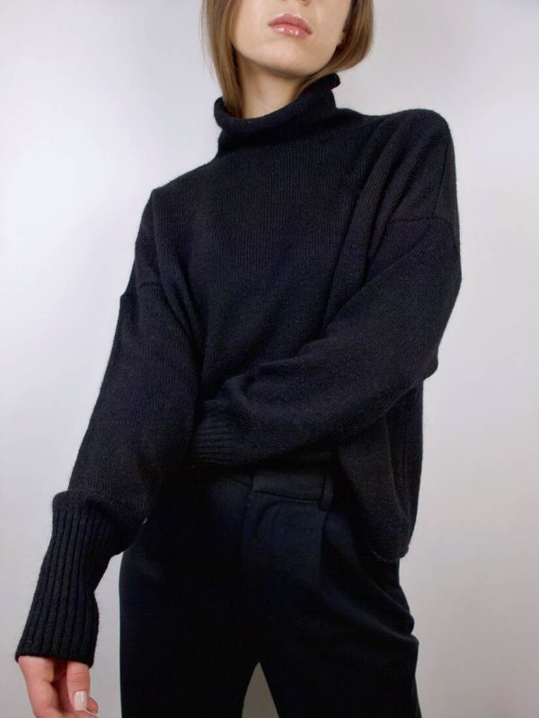 Modelka nosi rozmiar XS-S. Skład: 80% wełna merino, 20% kaszmir.Szerokość w ramionach 33 cm