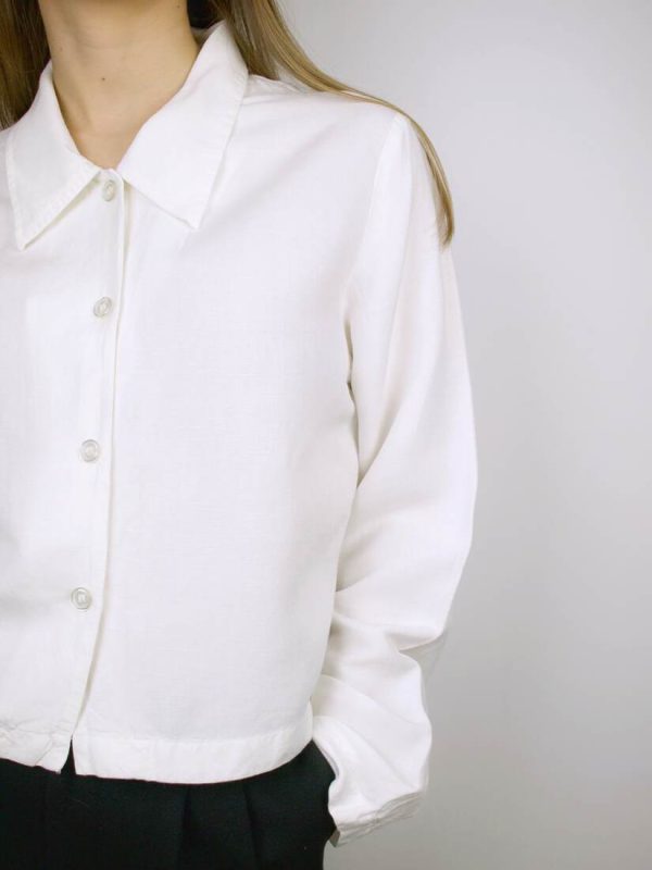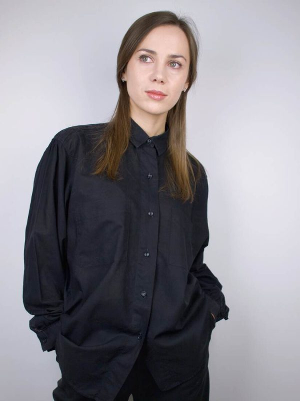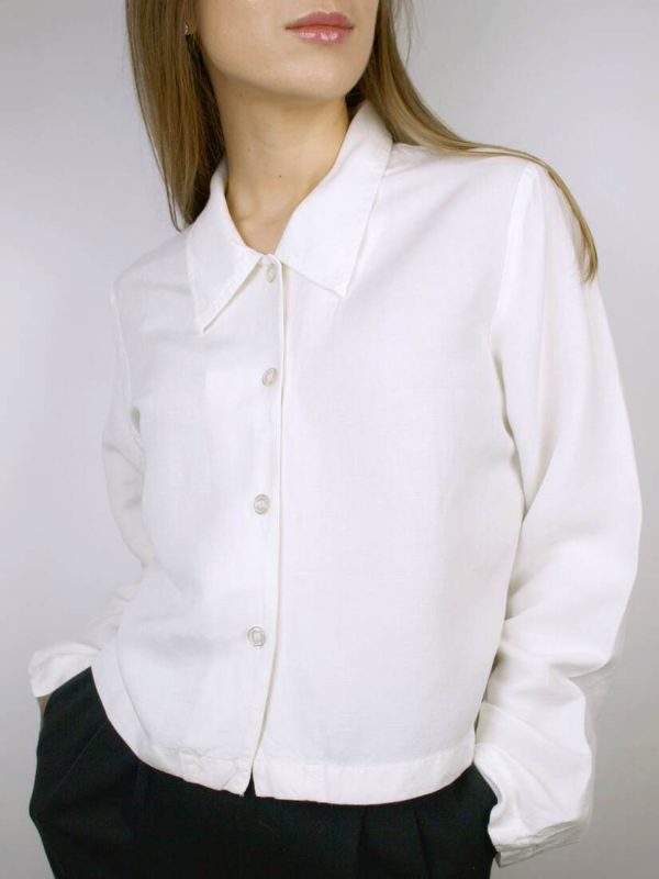Modelka nosi rozmiar XS-S. Skład: 55% len, 45% wiskozaSzerokość w ramionach 37,5 cm