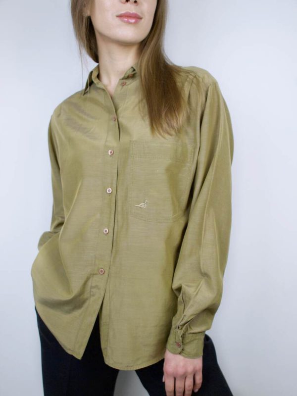 50,00 zł35,00 złKoszula vintage wykonana z mieszanki bawełny i jedwabiu. Koszula ma strukturę w drobny prążek. Rozmiar z metki 40, polecam na L, lub jako oversize. Na dole koszula ma delikatne wgięcia materiału, nie są widoczne w noszeniu.