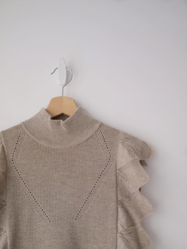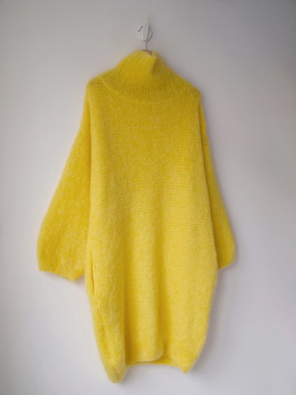 320,00 złSukienka ekskluzywnej marki American Vintage o luźnym fasonie. Wykonana z bardzo puszystego kid moheru – najmiększego i najbardziej przyjemnego w noszeniu rodzaju moheru. Sukienka posiada bufiaste rękawy oraz kieszenie