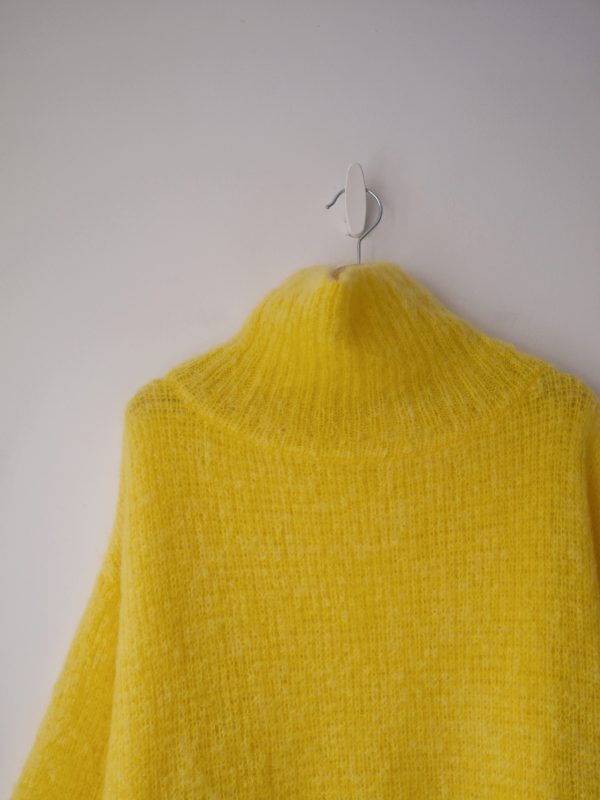 320,00 złSukienka ekskluzywnej marki American Vintage o luźnym fasonie. Wykonana z bardzo puszystego kid moheru – najmiększego i najbardziej przyjemnego w noszeniu rodzaju moheru. Sukienka posiada bufiaste rękawy oraz kieszenie