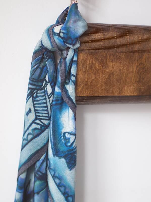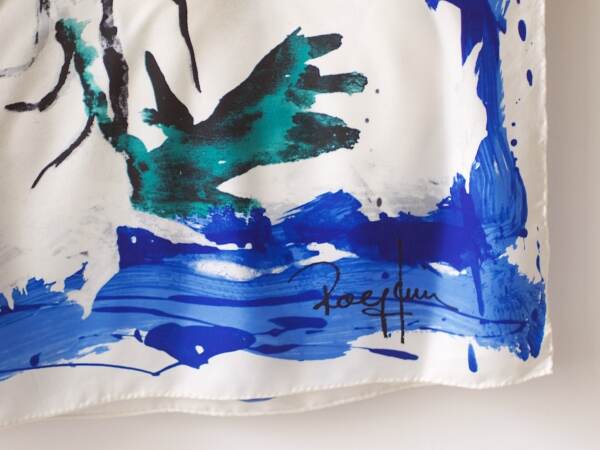 Unikatowa jedwabna apaszka vintage z obrazem Rolf Knie „Tree white tigers”. Wysoka jakość wykonania, made in Switzerland. Jak nowa, idealna na prezent.