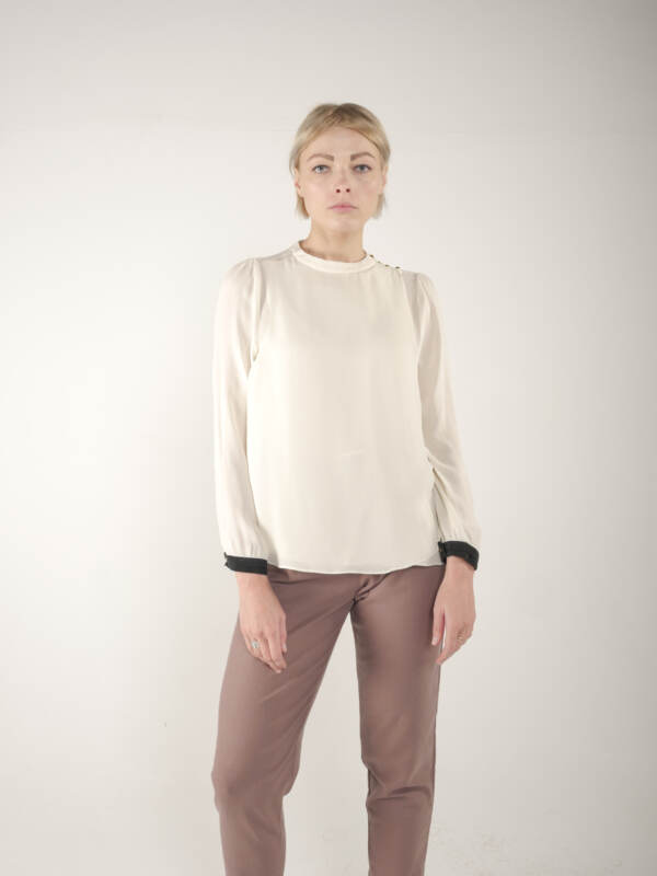 Koszula vintage z ozdobnymi guzikami, bardzo przyjemna w dotyku. Materiał to poliester, koszula prawie nie gniecie się.