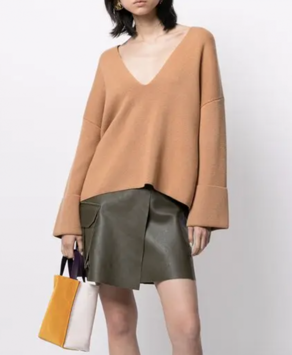 250,00 złSweter ekskluzywnej skandynawskiej marki Baum und Pfergarten, model Coalbee, cena katalogowa 370 USD. Sweter ma krój oversize, rękawy typu dzwony oraz dekolt w serek
