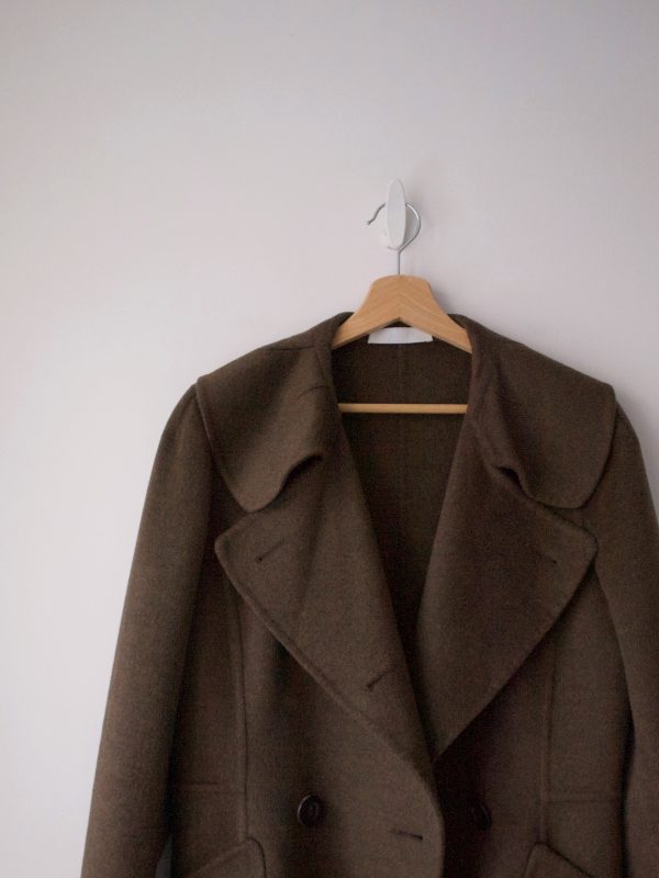 Krótki płaszczyk/ kurtka luksusowej marki Nicole Farhi. Wykonany z bardzo miłej w dotyku wełny z baby alpaki z dodatkiem wełny owczej. Może być zapinany na różne sposoby. Bez podszewki.
