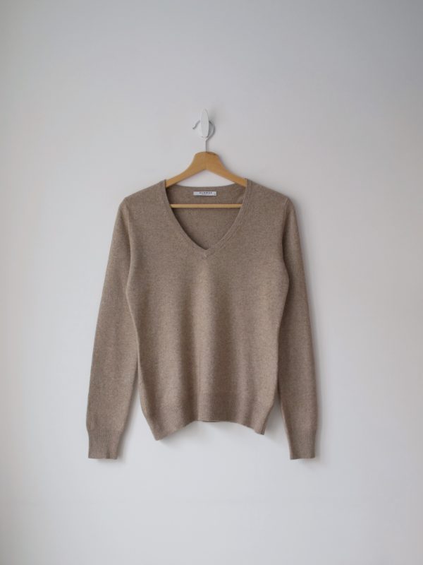 140,00 złSweter o klasycznym fasonie, wykonany z mieszanki kaszmiru i jedwabiu. Kolor to beżowy melanż. Sweter jest delikatnie sfilcowany, nie jest to ani widoczne ani wyczuwalne w noszeniu.