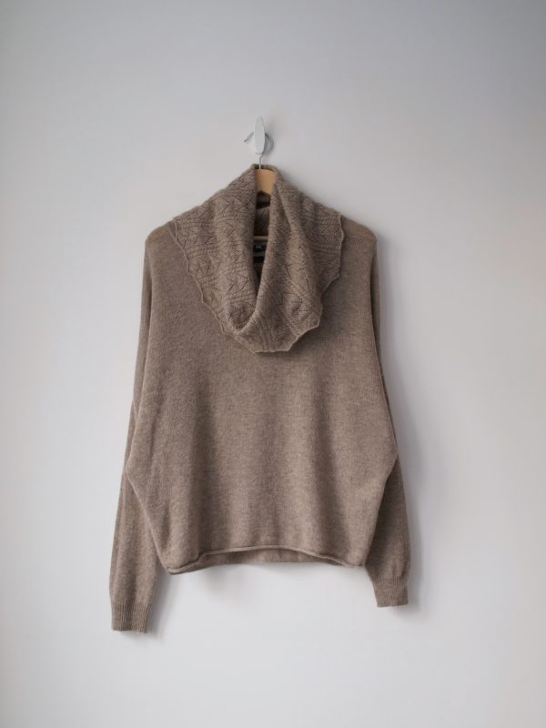 Puszysty wełniany sweter, wyprodukowany we Włoszech. Ekskluzywna włoska marka Jucca, koszt podobnego modelu na stronie marki to 265 eur.