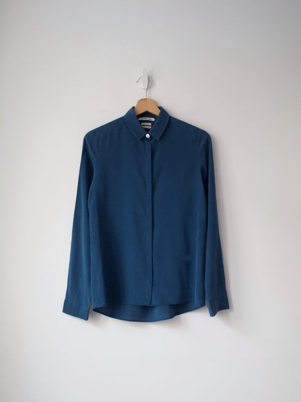 Bluzka ekskluzywnej niemieckiej marki Rich&Royal, specjalizującej się w zrównoważonej produkcji ubrań. Wykonana z jedwabiu, zapinana na guziki z naturalnej muszli. Kolor ciemny turkusowy.