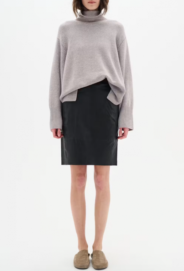 Spódnica skandynawskiej marki InWear, premium linia. Model Luelle, dostępny na stronie w cenie 199,95 eur, czyli ponad 860 zł. Spódnica wykonana z miękkiej skóry, bez podszewki, w pasie gumka dla lepszego dopasowania.