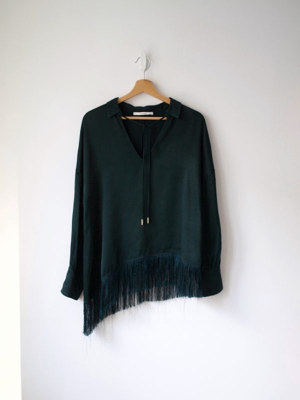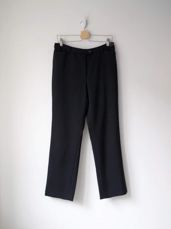 140,00 złSpodnie vintage, wykonane z tkaniny z dużym udziałem wełny. Wysoki stan, zapinane na zamek kieszenie, nogawki delikatnie zwężane ku dołowi.