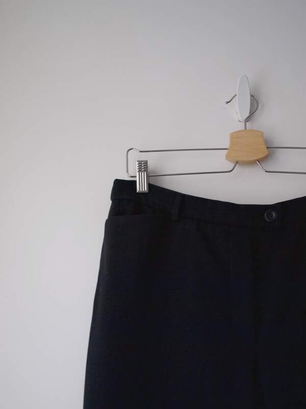 140,00 złSpodnie vintage, wykonane z tkaniny z dużym udziałem wełny. Wysoki stan, zapinane na zamek kieszenie, nogawki delikatnie zwężane ku dołowi.