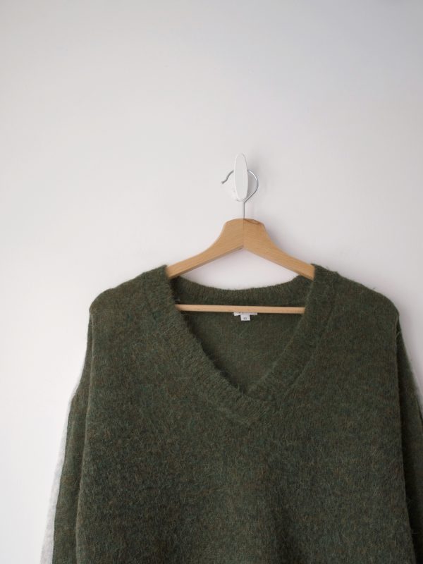 Sweter o luźnym fasonie, ekskluzywna angielska marka Jaeger London. Wykonany z miłej w dotyku wełny z dodatkiem kaszmiru.