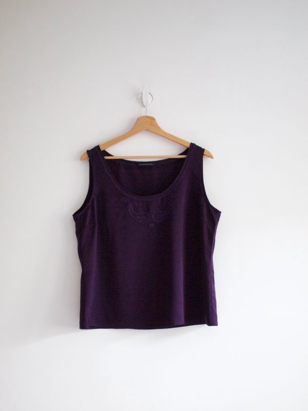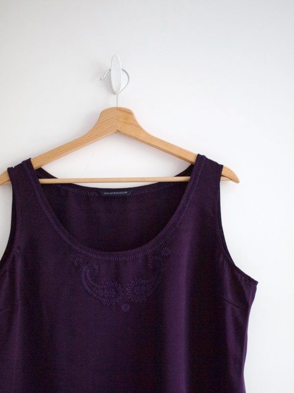 Top zdobiony haftem, wykonany z gęstego, wysokiej jakości jedwabiu.
