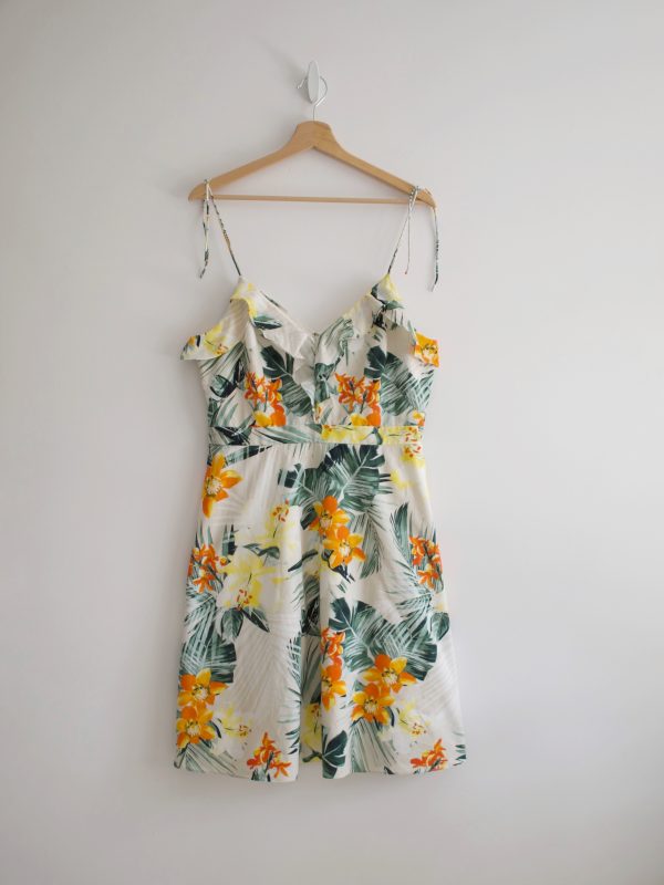 Bawełniana sukienka w tropikalny wzór od ekskluzywnej marki Karen Millen. Model z podszewką, zapewniający komfort nawet w upalne dni. Cena katalogowa: 223 euro.