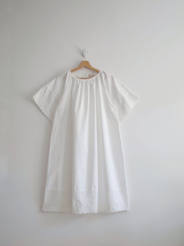 Sukienka w rustykalnym stylu duńskiej marki O’tay, specjalizującej się w produkcji wysokiej jakości ubrań. Cena nowej sukienki tej marki to około 200 euro. Model o luźnym fasonie, z rękawami i dołem wykończonymi haftem angielskim. Zapinana z tyłu na zamek.