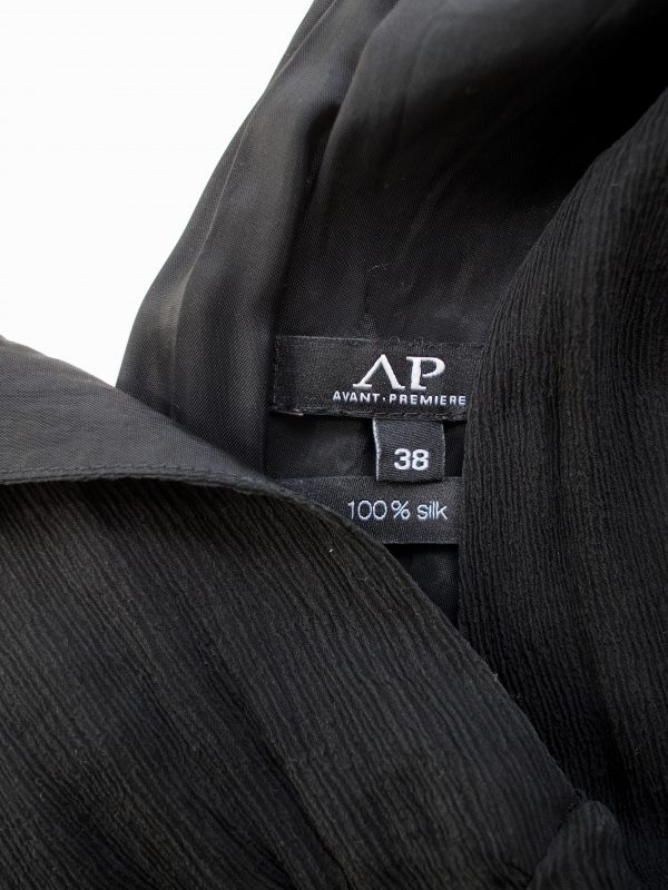 Unikatowa sukienka luksusowej niemieckiej marki Marc Cain. Model o lekko asymetrycznym fasonie, wykonany z dwóch warstw cienkiego jedwabiu. Górną warstwę można zawiązać lub pozostawić swobodnie. Sukienka posiada podszewkę. Ceny jedwabnych sukienek tej marki na stronie producenta zaczynają się od około 1800 zł.