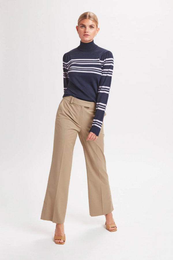 Spodnie luksusowej skandynawskiej marki Karen By Simonsen. Wykonane z materiału z dużym dodatkiem wełny. Wysoki stan, boczne kieszenie, nogawki wykończone rozporkami, można zaprasować na kant. Cena katalogowa 169.95 euro, czyli ponad 700 zł.