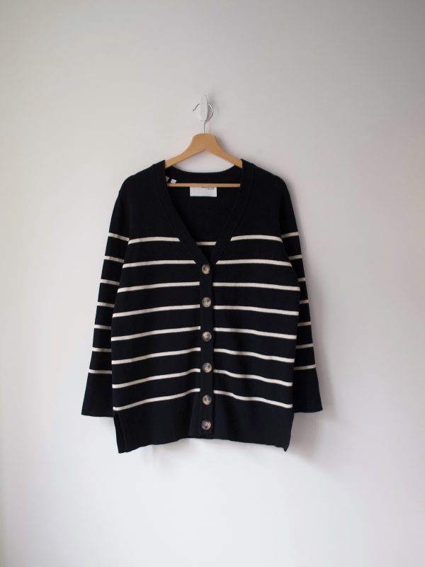 220,00 złKardigan renomowanej skandynawskiej marki Ganni. Wykonany z miłej w dotyku wełny merino z dodatkiem wełny z jaka oraz poliamidu, nie gryzie. Kolor granatowy.