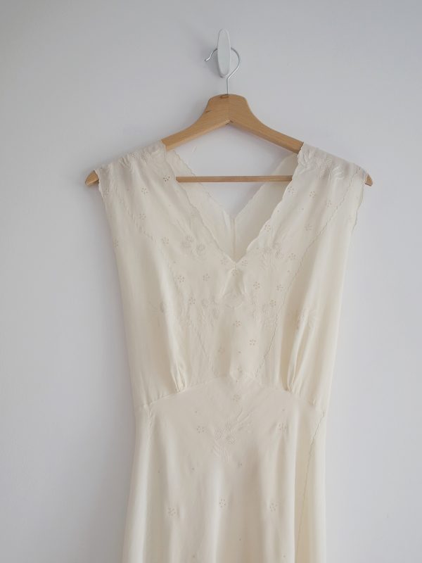 250,00 złUnikatowa jedwabna sukienka. Zdobiona haftem, z jedwabnym wiązaniem w pasie. Bez podszewki. Sukienka możliwie była szyta ręcznie, więc nie posiada metki z rozmiarem, proszę sprawdzić wymiary. Raczej dla osoby wysokiej.