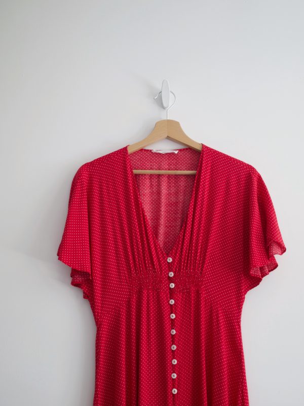 165,00 złSukienka skandynawskiej marki Other Stories zdobiona koralikowymi groszkami. Z tyłu zapinana na ukryty zamek, ramiączka są regulowane. Cena katalogowa £95, czyli 480 zl.