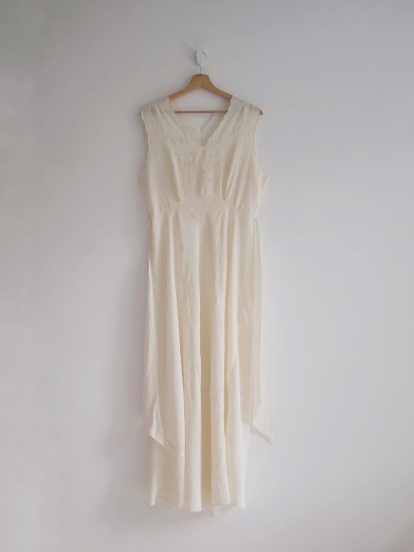 250,00 złUnikatowa jedwabna sukienka. Zdobiona haftem, z jedwabnym wiązaniem w pasie. Bez podszewki. Sukienka możliwie była szyta ręcznie, więc nie posiada metki z rozmiarem, proszę sprawdzić wymiary. Raczej dla osoby wysokiej.